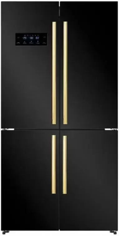 Холодильник Gencool GDCD-595WG — эффектный отдельно стоящий агрегат в черном корпусе с золотой фурнитурой, который привлекает внимание строгой геометрией и лаконичным фронтом. Его габариты 182×90.5×72 см дают внушительную площадь хранения, а продуманное сочетание внешних ручек и дверного упора Side-by-Side обеспечивает удобство при повседневном использовании.