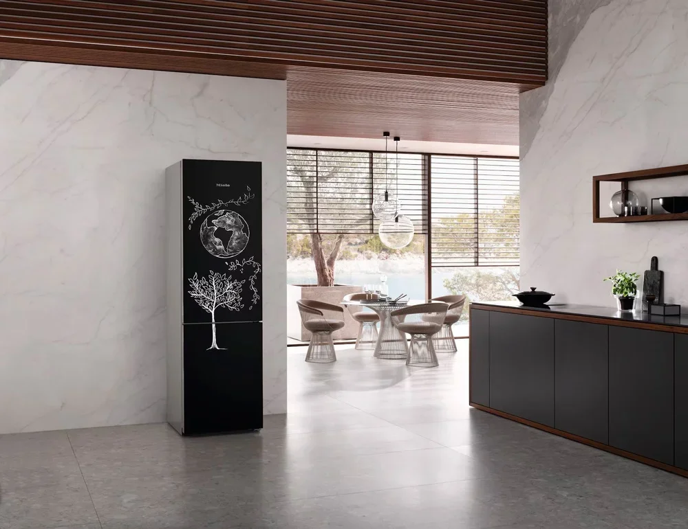 Холодильник Miele KFN 4795 CD Blackboard — стильный и продуманный прибор, который сочетает презентабельный внешний вид и продвинутую функциональность. Его высокий корпус и габариты 201.56068.2 см подходят для просторной кухни и обеспечивают большой внутренний объём. Черный фронт в сочетании с боковыми стенками цвета «Серебристый металлик» придают агрегату современный и сдержанный облик. Фронтальная панель может играть роль меловой доски, что превращает прибор в элемент интерьерного декора и удобный органайзер для заметок и меню. Встроенная ручка и технология Click2open обеспечивают аккуратный силуэт и лаконичность фасада.