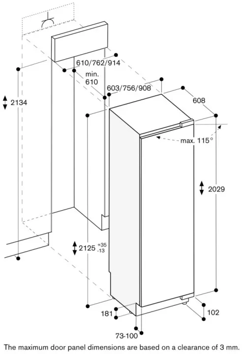 Практичность дополнена возможностью перевешивания двери, что позволяет адаптировать устройство под особенности планировки кухни. Угол открывания составляет 115°, что удобно для загрузки и выгрузки продуктов. Максимально допустимый вес фасада — 41 кг, что позволяет использовать тяжелые декоративные панели. Встроенная система контроля влажности в зоне свежести и температурный диапазон от −1 до +3°C создают оптимальные условия для хранения скоропортящихся продуктов. В модели реализован режим Шаббат, что делает её подходящей для пользователей с особыми требованиями к эксплуатации техники.