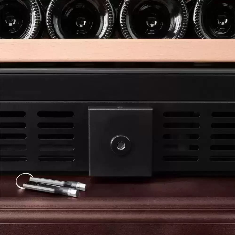 Управление сенсорное со цифровым дисплеем и электронной регулировкой термостата делает выставление температур быстрым и точным. Функция памяти настроек сохраняет параметры при кратковременных отключениях питания. Есть индикация повышения температуры и открытой двери, что даёт оперативную сигнализацию о нестандартных ситуациях, а замок и защита от детей обеспечивают физическую безопасность коллекции.