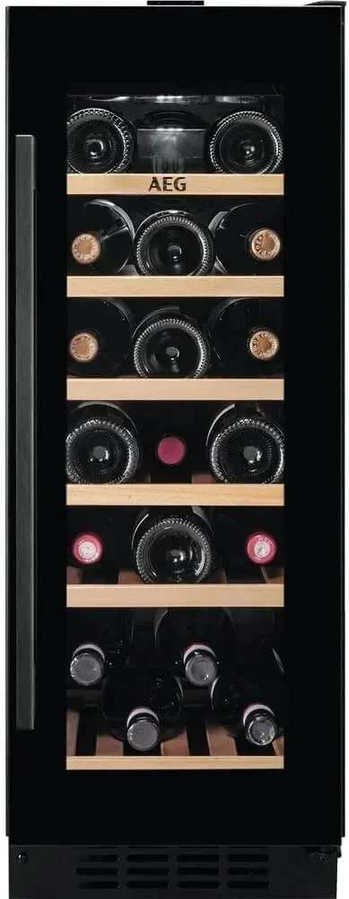 Винный шкаф AEG AWUS020B5B выполнен в сдержанном черном цвете и предназначен для встраивания в кухонный комплект. Его лаконичный фасад с тонированным стеклопакетом и накладной ручкой смотрится элегантно и строго. Компактные габариты позволяют разместить прибор в нише высотой 82,2 см, что делает его отличным решением для обычных квартир. Стеклянная дверь с защитой от УФ-излучения сохраняет эстетичный вид бутылок и защищает вино от вредного воздействия света.