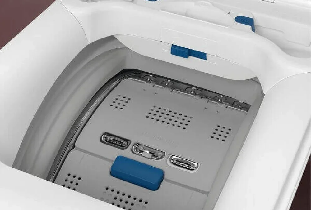 Несмотря на компактные габариты, агрегат обеспечивает достаточную вместимость: до 6 килограммов белья за один цикл. Этого объёма хватит для повседневных нужд одного или двух человек — от стирки повседневной одежды до обработки постельного белья и полотенец. Вертикальная загрузка позволяет добавлять забытые вещи даже после начала программы, а также упрощает доступ для пользователей с ограниченной подвижностью.
