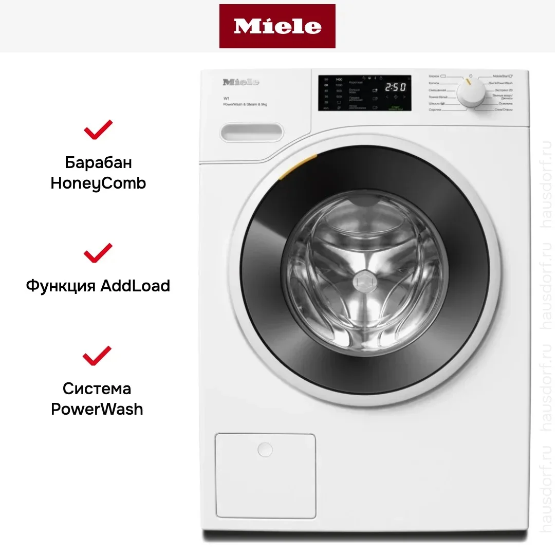 Цвет этой стиральной машинки — белый лотос. Ее можно установить в колонну с сушильной машиной, чтобы оптимизировать рабочее пространство и сделать удобный «прачечный» уголок. Обычно для этого необходимы специальные соединительные элементы — ищите их в разделе «Аксессуары». В данной модели Miele используется барабан HoneyComb. Мотор: ProfiEco. Благодаря ему машина работает тише, потребляет меньше электроэнергии, сохраняя при этом необходимую мощность.