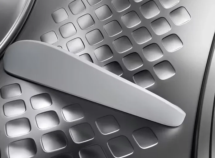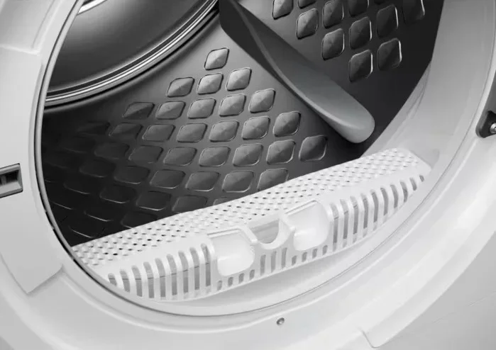 Тип сушки белья в данной модели — тепловой насос. Благодаря этому воздух поступает в барабан уже теплым, что ускоряет работу.