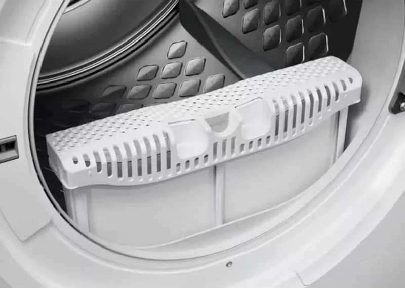 В основе — тепловой насос, он сушит мягко и экономно. Температура ниже, чем у ТЭН-сушек, волокна защищены от перегрева. Среднегодовое потребление — 85 кВт·ч, класс энергоэффективности B. Инверторный двигатель работает тише и служит дольше. Уровень шума 63 дБ комфортен для квартиры. Экологичный хладагент R290 снижает воздействие на окружающую среду. Мощность подключения всего 550 Вт, нагрузка на сеть минимальна.