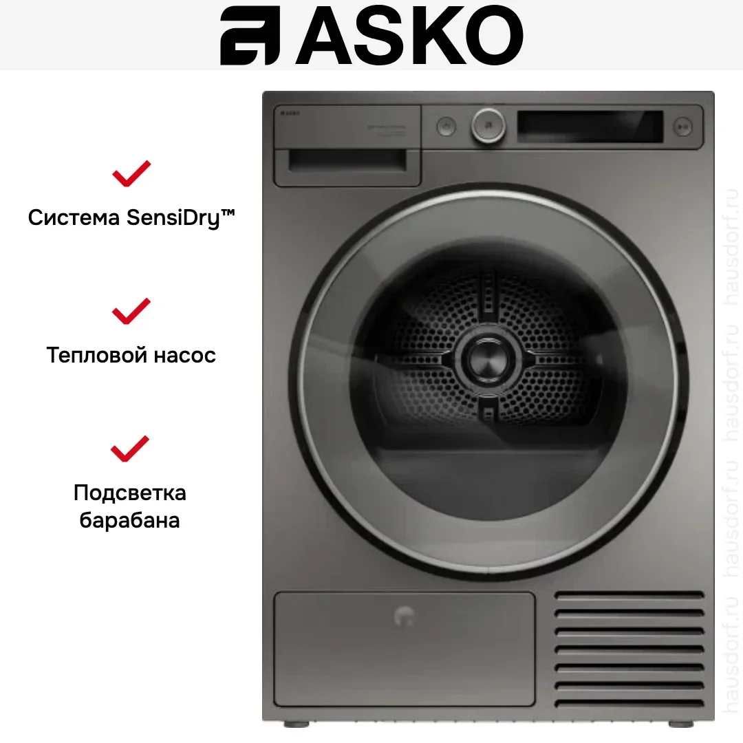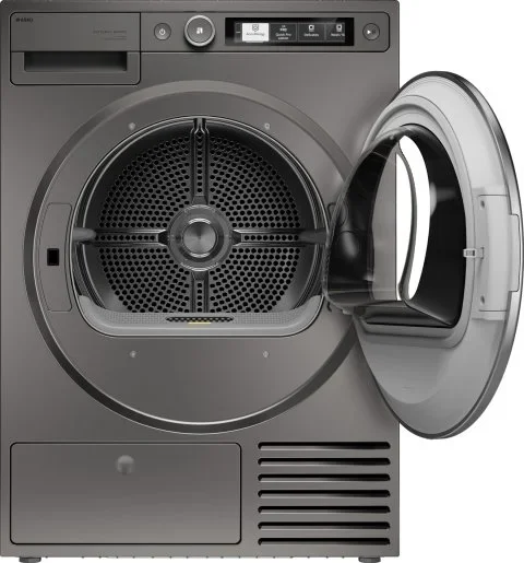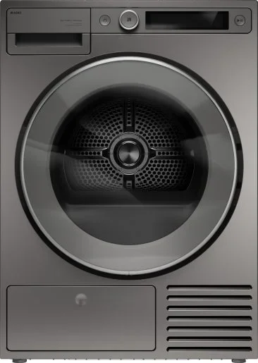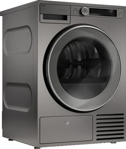 Сушильная машина ASKO T509HRT — элегантный бытовой прибор с лаконичным оформлением в цвете титан и дизайном Style, который органично дополнит современную кухню или прачечную. Горизонтальная панель управления с кнопками и информативным дисплеем позволяет быстро настроить режим, а круглая дверца со стеклом придаёт внешности премиальный вид; конструкция предусматривает перенавешивание, навес справа и возможность монтажа в колонну для экономии места. Титановые оттенки корпуса и совпадающие декоративные элементы панели создают цельный визуальный образ, подчёркнутый аккуратными линиями и продуманной отделкой.