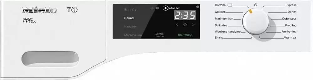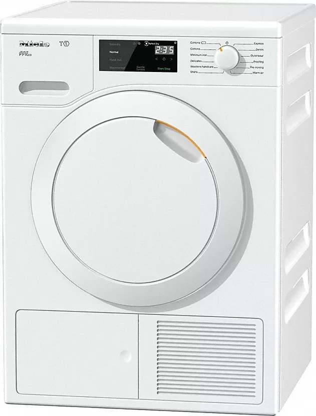 Miele TCE620WP — сушильная машина с сенсорной панелью управления. Опция FragranceDos предоставляет возможность использования особой ароматической жидкости для придания вещам любимого аромата. Система автоматического отвода конденсата повышает комфорт эксплуатации модели. Сотовая структура барабана обеспечивает деликатный уход за изделиями из тонких тканей.