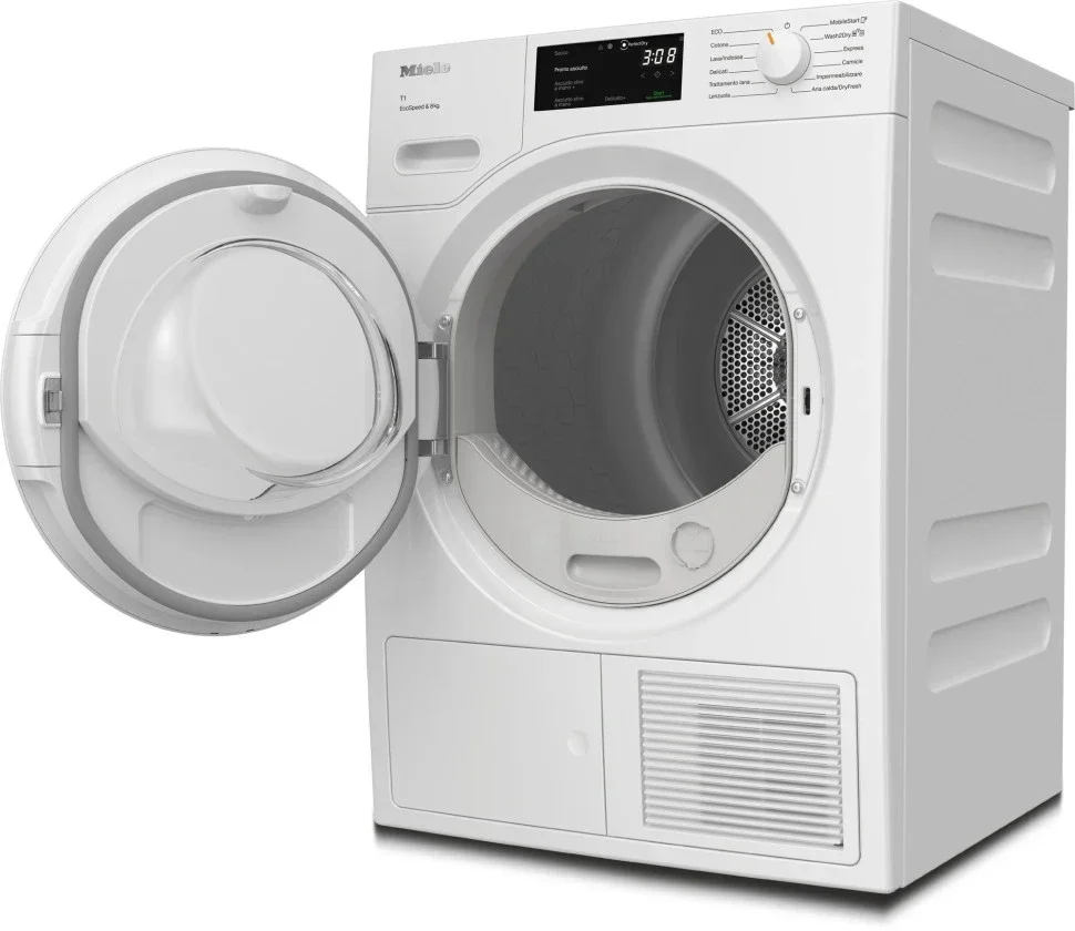 Сушильная машина Miele TWC640WP White Edition — элегантный прибор для дома с продуманным внешним видом и удобной эргономикой. Корпус в оттенке «белый лотос» и панель управления в том же тоне создают спокойную, премиальную эстетику. Контрастная дверца «чёрный обсидиан» придаёт образу характер и делает прибор визуальным акцентом в интерьере. Наклонная панель удобна для чтения показаний, а поворотный программатор в сочетании с сенсорными кнопками обеспечивают быстрый доступ к настройкам.