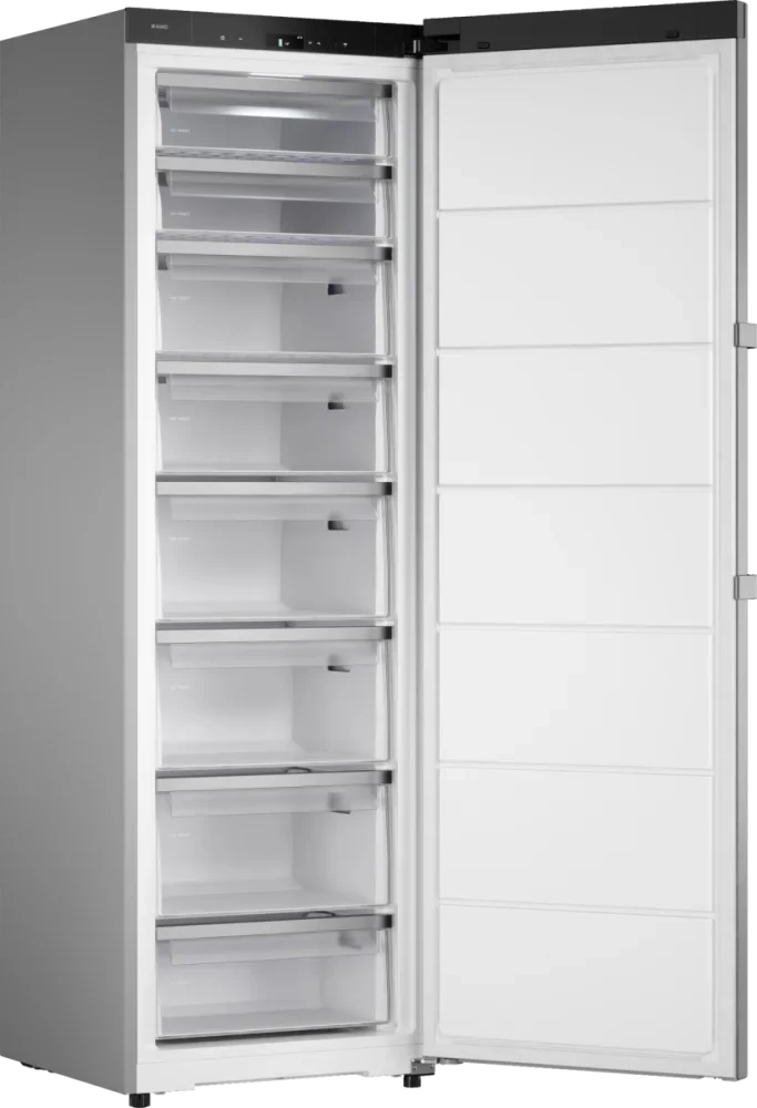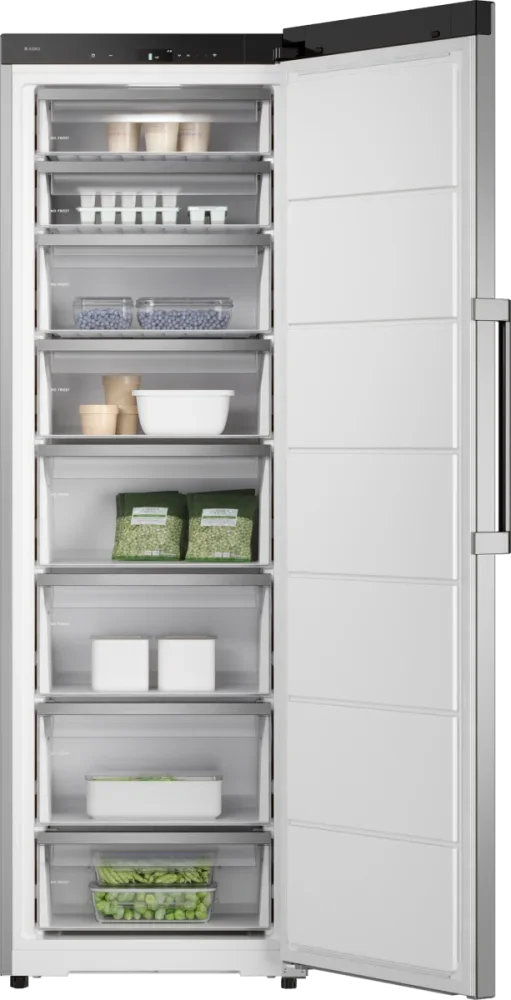 Морозильная камера ASKO RFF586KNCS1 представляет собой элегантное и функциональное решение для тех, кто ценит стиль и производительность: корпус в цвете «нержавеющая сталь» оформлен в дизайне Series 5 и оснащён вычурной ручкой с гравировкой бренда, а продуманная задняя стенка из нержавеющей стали AISI 304 обеспечивает долговечность и простоту ухода. При высоте 185 см и компактной площади основания 59×59 см прибор идеально вписывается в кухонную нишу благодаря поддержке KitchenFit и опции установки Side-by-Side; упаковочные габариты 192×66×73 см облегчают доставку и монтаж. Объём агрегата внушителен — общий 337 л, из них полезно 294 л, размещённых в одной температурной зоне с восемью прозрачными ящиками на телескопических направляющих, что обеспечивает удобный доступ и грамотное зонирование запасов. Система циркуляционного охлаждения с инверторным компрессором и экологичным хладагентом R600A поддерживает стабильную температуру, а технология No Frost исключает образование инея, избавляя от ручного оттаивания; функция суперзамораживания и способность замораживать до 16 кг в сутки пригодятся для быстрого сохранения свежести больших партий продуктов, а автономное сохранение холода в течение 17 часов сохраняет содержимое при временных отключениях питания. Управление выполнено в электронной форме с сенсорными кнопками и ярким TFT-дисплеем, предусмотрены тактильная обратная связь и совместимость с приложением ConnectLife для удалённого контроля; регулировка температуры и адаптивный контроль поддерживают стабильный климат, а индикация — световая и звуковая — оперативно сигнализирует о повышении температуры или оставленной открытой дверце. Внутреннее светодиодное освещение делает содержимое прозрачным и легко обозримым, а наличие лотка для приготовления льда добавляет практичности. Прибор обладает широким набором пользовательских функций: контроль уровня влажности, режим Шаббат, функция «Вечеринка», ночной режим и режим очистки дают гибкость в эксплуатации и упрощают обслуживание. Технические параметры включают один компрессор, класс энергопотребления A++ с годовым расходом 297 кВт·ч, номинальное напряжение 220-240 В при частоте 50-60 Гц, мощность подключения 180 Вт и уровень шума 34 дБ, длина сетевого кабеля 3 м, возможность перевешивания дверцы и регулировки ножек для точной установки. Этот морозильный аппарат с одной дверью и правым дверным упором сочетает в себе премиальный внешний вид, продвинутые функции хранения и высокую энергоэффективность, что делает его надёжным выбором для семей и тех, кто ведёт активную гастрономическую жизнь.