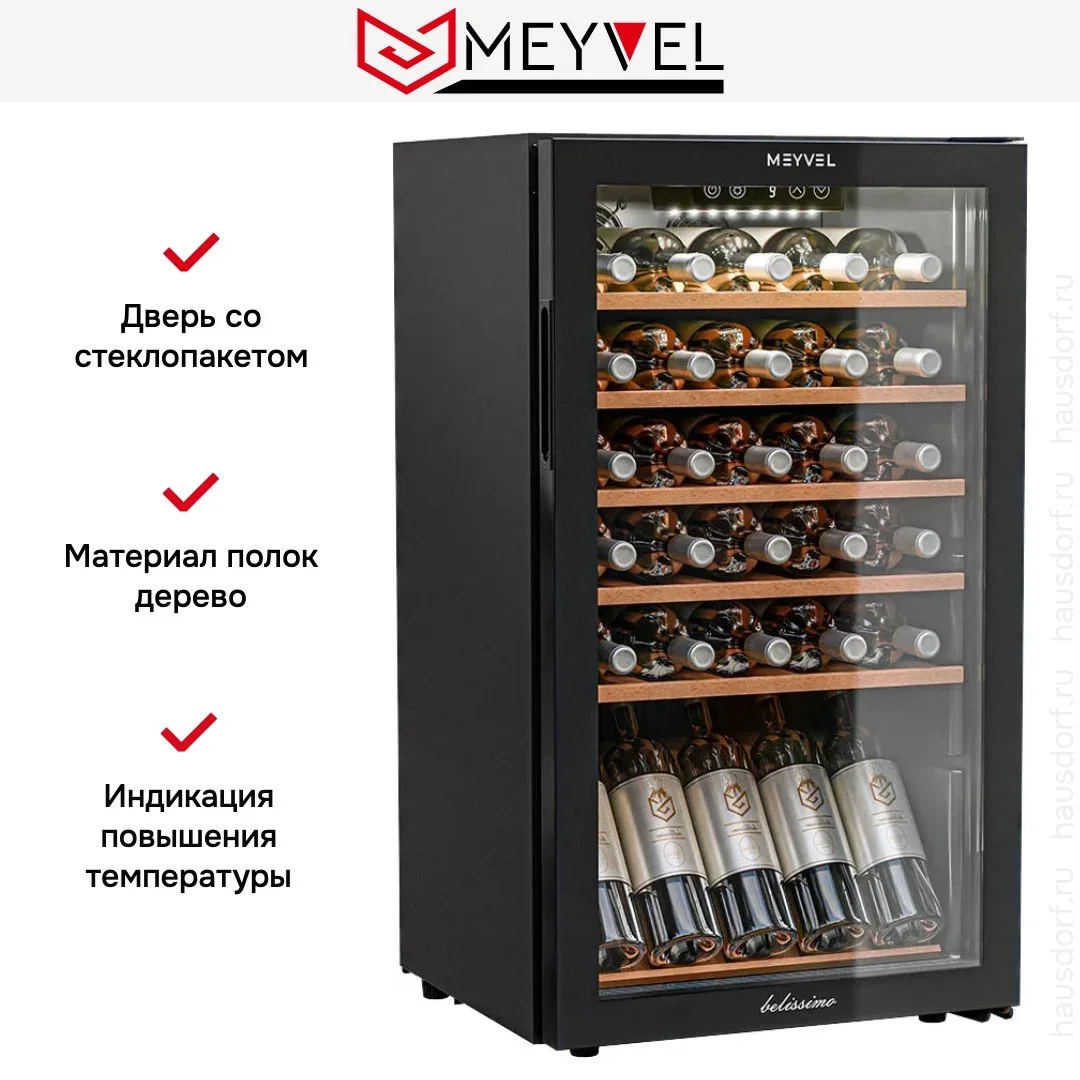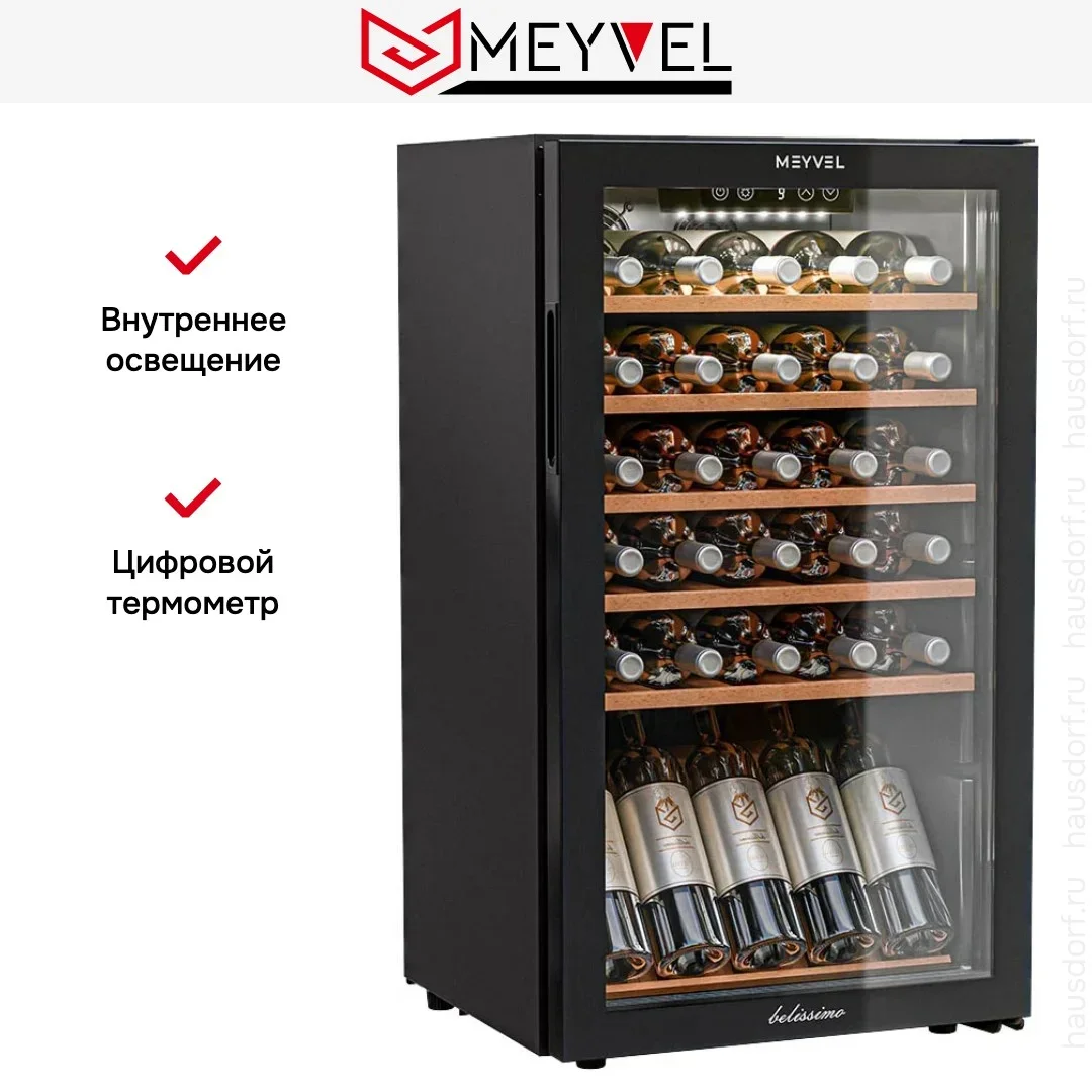 Винный шкаф Meyvel MV33-KBF1 — отличный баланс между вместительностью и компактностью. Она подходит для тех, кому нужно место для хранения нескольких десятков бутылок, но кто не готов выделять под технику слишком много пространства. Преимущество шкафа в его универсальности: он одинаково хорошо смотрится и в гостиной, и на кухне. Это надежное компрессорное устройство, которое работает тихо и эффективно, обеспечивая вашему вину профессиональный уровень заботы.