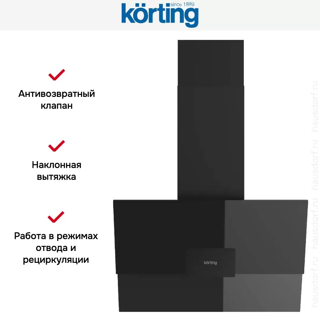 Данная вытяжка крепится на стену и имеет наклонную фронтальную панель, что придает изюминку дизайну и позволяет сохранить свободное рабочее пространство внизу. Обратите внимание на цветовые сочетания модели Korting KHC 66373 BXGN, чтобы органично вписать ее в свою квартиру. Оттенок корпуса: черное стекло. Благодаря лампочкам, которые расположены на нем, можно освещать плиту и столешницу рядом, чтобы готовить было еще проще и приятнее.