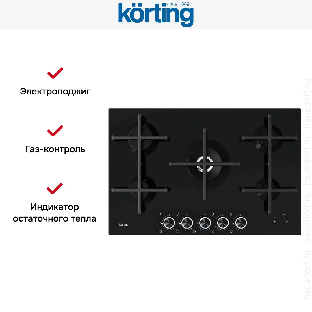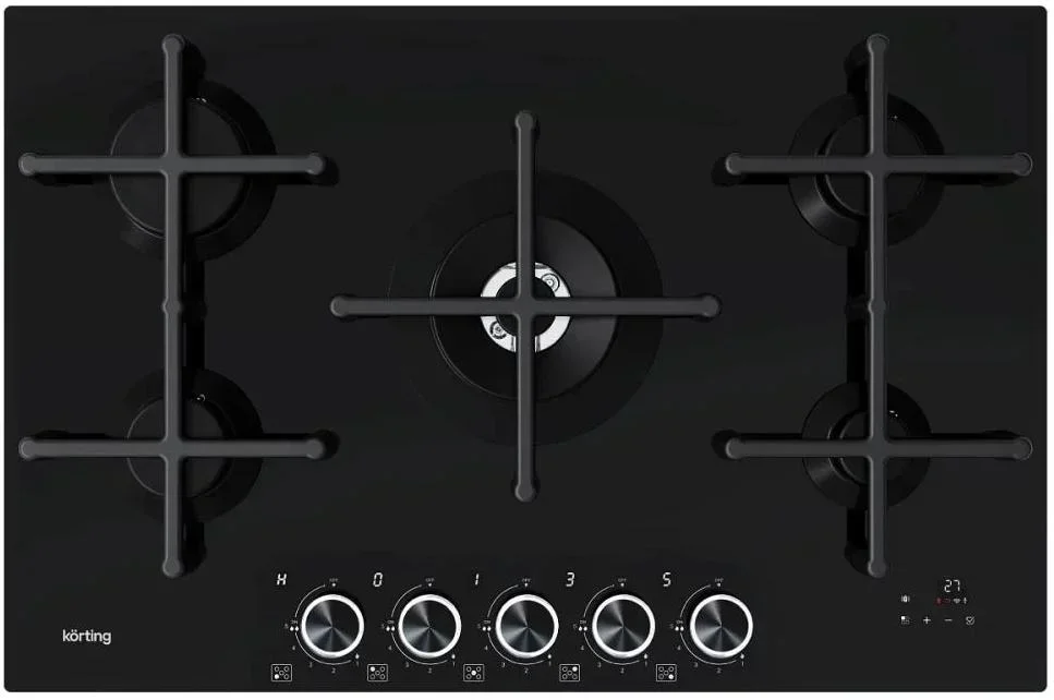 Выбор газовой варочной панели чаще всего обусловлен тем, что в частный дом или квартиру проведен именно газ в качестве обогрева. Работать с этой моделью довольно просто, так как мощность нагрева видна невооруженным взглядом — по силе огня в горелке. Количество конфорок в этой модели: 5.