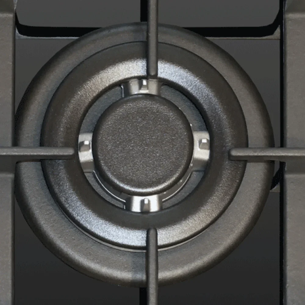 Выбор газовой варочной панели чаще всего обусловлен тем, что в частный дом или квартиру проведен именно газ в качестве обогрева. Работать с этой моделью довольно просто, так как мощность нагрева видна невооруженным взглядом — по силе огня в горелке. Количество конфорок в этой модели: 3. Горелки с тройной короной имеют несколько ступеней нагрева — в зависимости от них образуется несколько кругов пламени.