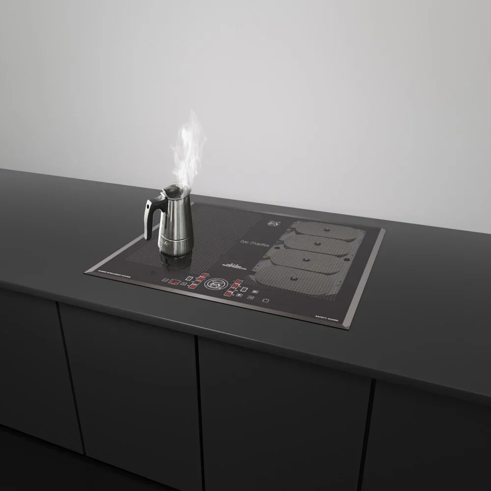 Варочная панель работает на индукционном нагреве — это значит, что повышается температура непосредственно посуды, в которой готовится блюдо. Таким образом промежуточная ступень с предварительным нагревом конфорки пропускается — сокращается время, повышается безопасность. Количество конфорок в этой модели: 4.