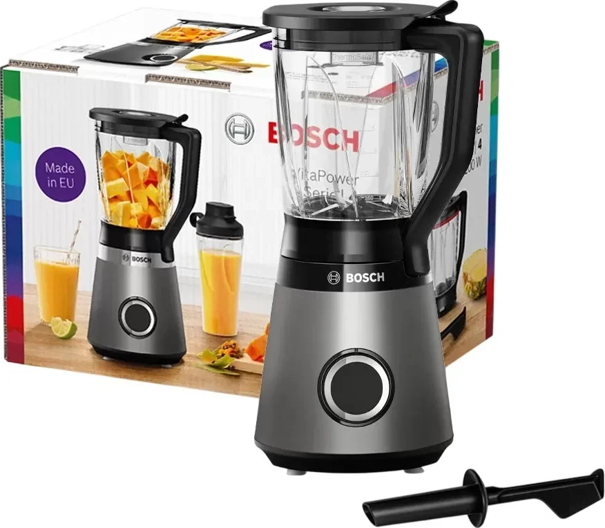 Блендер Bosch MMB6172S нержавеющая сталь — мощный и надёжный стационарный прибор, созданный для тех, кто требует высокой производительности и безупречного качества в приготовлении разнообразных блюд. С энергопотреблением 1200 ватт и максимальной частотой вращения до 30 000 оборотов в минуту он легко справляется с самыми плотными ингредиентами: измельчает лёд, перерабатывает замороженные ягоды, рубит орехи, готовит густые крем-супы, воздушные коктейли и даже замешивает тесто. Такая мощность обеспечивает молниеносную и равномерную обработку без комков и остатков.