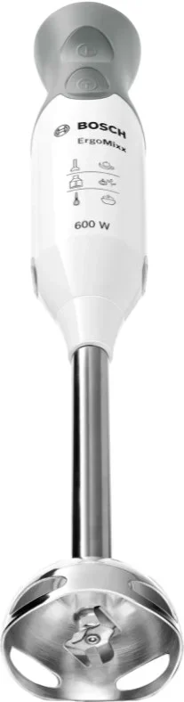 Погружной блендер Bosch MSM 66120 отличается лаконичным белым обликом и компактными габаритами 39.3×5.5×6.2 см, что делает его незаметным на кухонной стойке и удобным для хранения. Корпус выполнен из прочного пластика, а погружная часть — из нержавеющей стали, что сочетает лёгкость и долговечность. Мягкое покрытие рукояти Soft-touch и нескользящая поверхность повышают комфорт при длительной работе и снижают утомление рук.