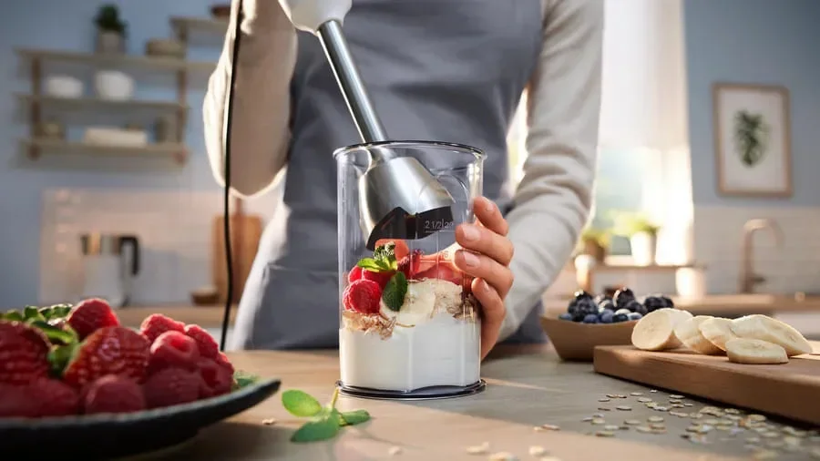 Блендер Bosch MSM4W210 белый — компактный и практичный погружной прибор, созданный для повседневных кулинарных задач в домашних условиях. С мощностью 600 ватт он уверенно справляется с базовыми операциями: измельчает мягкие овощи и фрукты, взбивает коктейли, готовит нежные пюре, супы-кремы, соусы и перемешивает ингредиенты для теста. Такая производительность обеспечивает оптимальный баланс между энергопотреблением и эффективностью, делая устройство экономичным и надёжным для ежедневного использования.