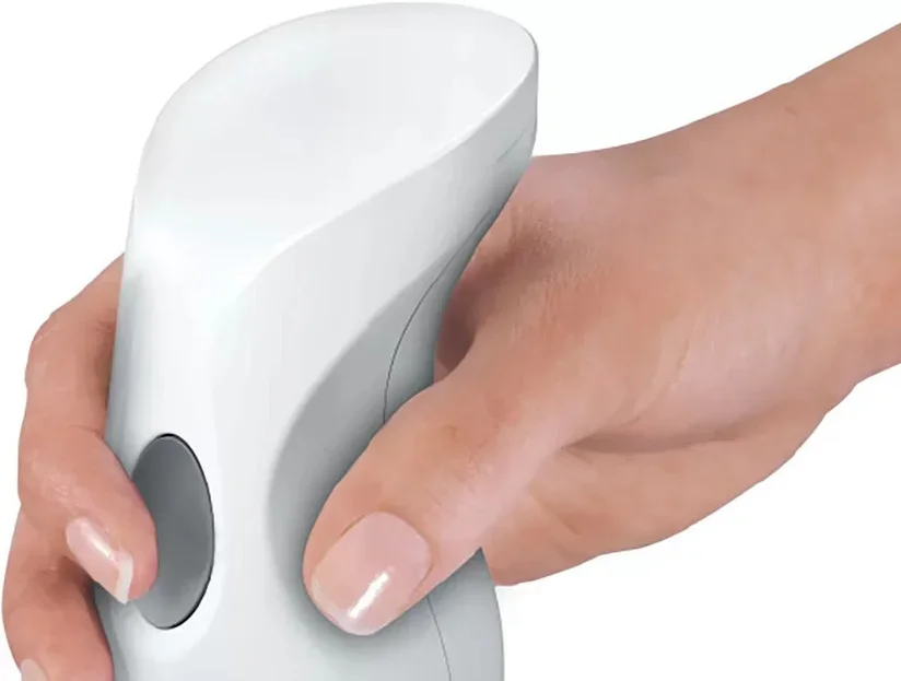 Дизайн продуман до мелочей: эргономичная ручка обеспечивает надежный хват и комфорт при погружении в емкость разных форм. Механическое управление и кнопочные переключатели просты и интуитивны, что сокращает время на освоение прибора. Функция AntiSplash снижает брызги при взбивании и измельчении, поэтому рабочая поверхность и одежда остаются чистыми даже при интенсивной работе в мелкой посуде.