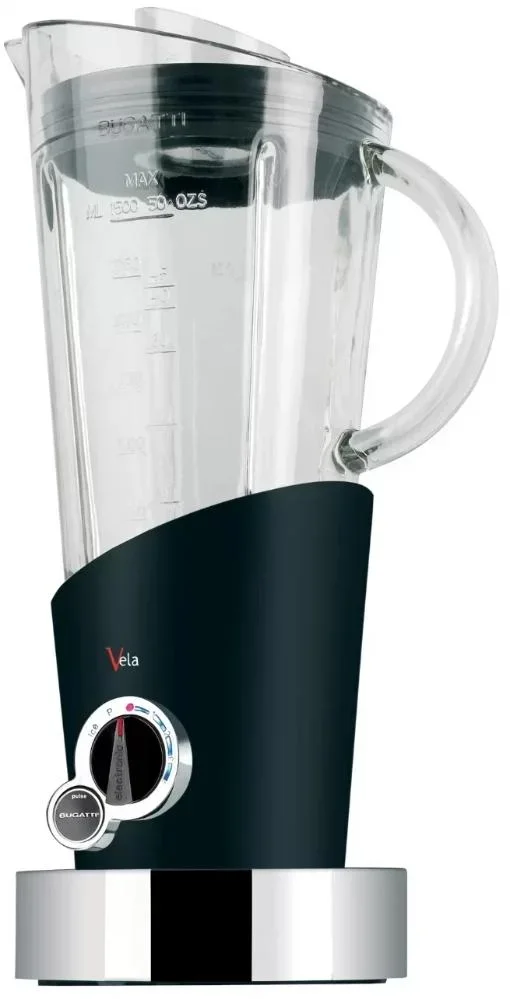 Стационарный блендер Bugatti позволяет готовить смузи, коктейли, смешивать соусы и заправки, измельчать продукты до состояния пюре и многое другое. Его конструкция подразумевает автономную работу — вам нужно только положить овощи или фрукты и выбрать режим. Корпус сделан в основном из металла, что повышает надежность прибора. Он может как влиться в общую гамму интерьера, так и стать ярким акцентом; доминирующий цвет — черный.