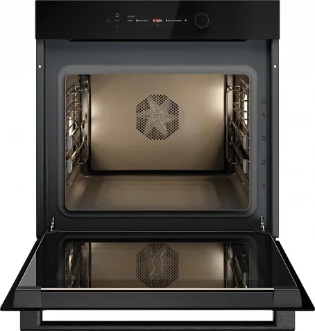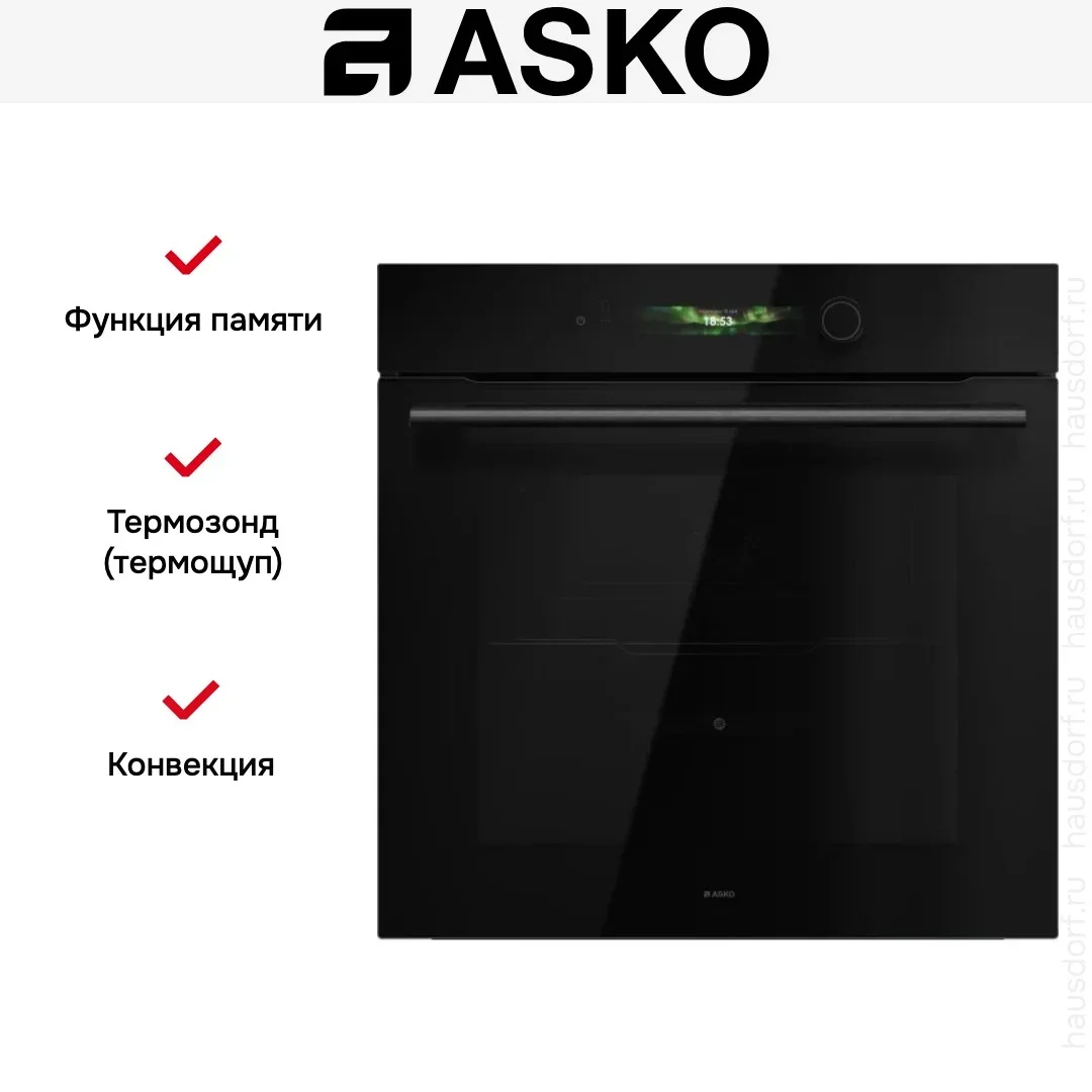 Духовой шкаф ASKO OT56BGH представляет собой стильное и продуманное встраиваемое решение для кухни, объединяющее емкость 71 литр и элегантный корпус NYACraft Glass Series 5 в черном стекле, что делает прибор выразительным акцентом интерьера. Модель независимого типа с электрическим подключением рассчитана на нишу 59×56×55 см, а её габариты 59.5×59.35×56.4 см обеспечивают удобную интеграцию в стандартные кухонные секции; дверь откидная со стеклянной поверхностью в три слоя и холодным стеклом гарантирует безопасность при эксплуатации, ручка декорирована логотипом бренда. Внутренняя камера с пиролитической эмалью и галогенным освещением рассчитана на приготовление на пяти уровнях, оснащена тремя типами направляющих — навесными и съемными с одной телескопической парой на уровне, всего доступно пять положений для противней; комплект включает два противня, решетку и термощуп для точного контроля степени прожарки. Панель управления сочетает сенсорные кнопки TouchControl и поворотные регуляторы с подсветкой, а цветной TFT-дисплей отображает настройки, часы и таймер; доступны отложенный старт, функция памяти и интеграция с приложением ConnectLife.TRIR для удаленного контроля. Доступные режимы охватывают десять рабочих программ: верхний/нижний нагрев, только нижний, конвекция, классический нагрев в сочетании с вентилятором, нагрев снизу плюс вентиляционный режим, большой электрический гриль с опцией вентилятор+гриль для равномерной корочки, аэрогриль (аэрофритюр), пошаговые рецепты и автоматический «шеф»-режим, а также режим консервации. Специальные возможности включают подогрев посуды, поддержание готовых блюд теплыми, размораживание и калибровку температуры по технологии Celsius°Cooking, расширяющие контроль над процессом. Для ускорения приготовления предусмотрен быстрый разогрев, экономичные программы ECO и функция 360°AirFlow для оптимального распределения горячего воздуха; опция разогрева и стерилизации помогает поддерживать чистоту посуды и инструмента, а режим «Шаббат» учитывает требования особого режима эксплуатации. Диапазон регулировки температур 30-300 °C позволяет реализовать широкий спектр рецептов, при этом класс энергопотребления A++ обеспечивает экономию электроэнергии. Внутренняя очистка осуществляется паровой обработкой, что упрощает уход за камерой и продлевает срок службы покрытия. Технические параметры включают питание 220-240 В при частоте 50-60 Гц и максимум температуры 300 °C; для удобства эксплуатации предусмотрено управление временем и электронные часы. Этот прибор рассчитан на тех, кто ценит сочетание высокой функциональности и современного дизайна, предлагая гибкие режимы приготовления, точное управление и комплект аксессуаров для профессиональных результатов дома.