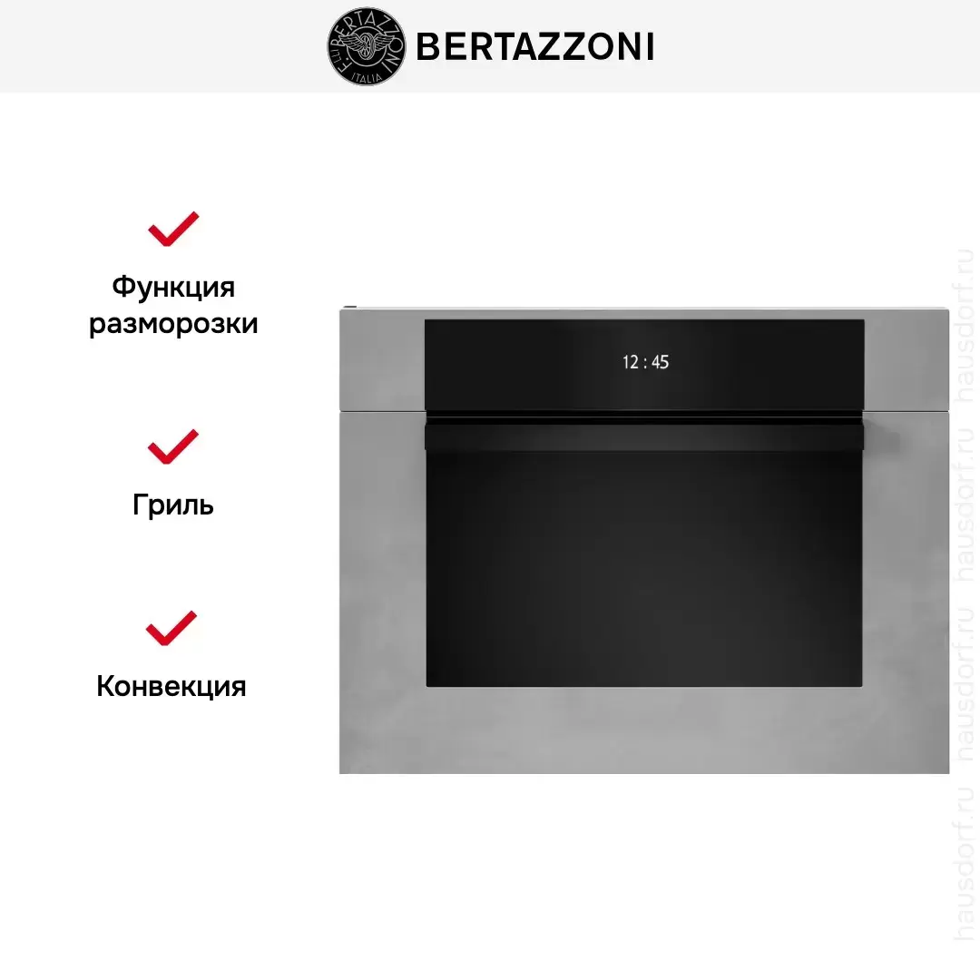 Bertazzoni F457MODVTZ — электрический духовой шкаф объемом 31 л. Функция пара Total Steam позволяет быстро приготовить полезную пищу. Управляется с помощью полностью сенсорного TFT-дисплея. Дверь плавно открывается и закрывается благодаря доводчику. Имеет ряд специальных функций: расстойка теста, размораживание, разогрев, сушка, стерилизация.
