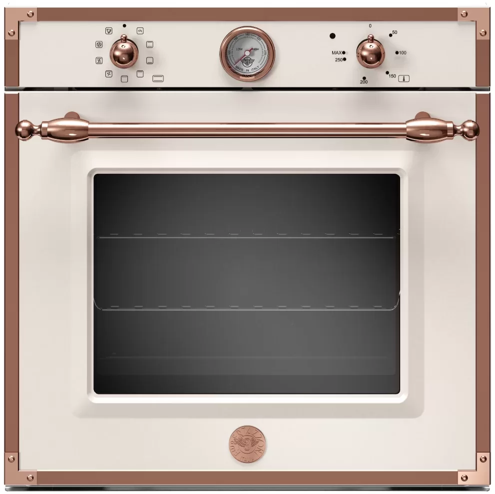 Стильная духовка Bertazzoni из линейки Heritage подойдет светлой кухне. Медная фурнитура и необычный аналоговый термометр станут интересным акцентом в дизайне всего пространства.