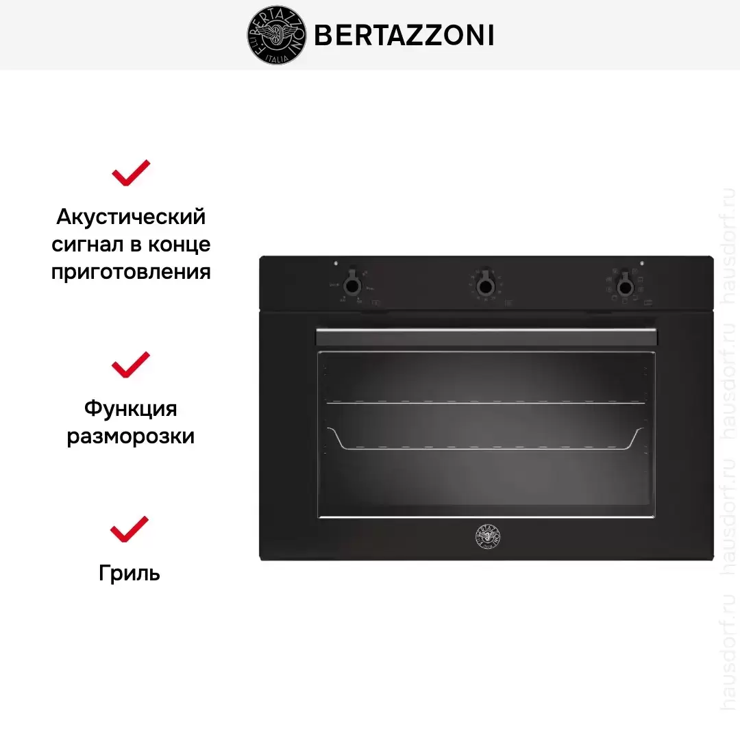 Bertazzoni F909PROEKN — независимая электрическая духовка черного цвета для профессионального и домашнего использования. Модель шириной 90 см имеет рабочую камеру объемом 100 литров, противни в ней могут размещаться на пяти уровнях. Для ухода за прибором предусмотрена каталитическая очистка. Девять режимов работы позволяют готовить при помощи верхнего и нижнего жара, инфракрасного гриля, конвекции, их сочетаний. Имеются специальные режимы размораживания, высушивания, выпечки пиццы. Простое и удобное механическое управление позволяет устанавливать параметры работы с помощью поворотных переключателей. Имеется таймер с автоотключением и подачей звукового сигнала по завершении работы. Контролировать процесс приготовления визуально поможет внутренняя подсветка. В дверце установлено двойное стекло.