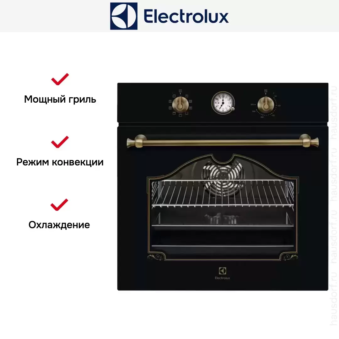 Количество режимов работы в духовом шкафу Электролюкс: 8. В число доступных программ входят: классический нагрев, нижний нагрев, конвекция, гриль для создания хрустящей корочки, пицца, и другие. Тип гриля в этой модели — электрический.