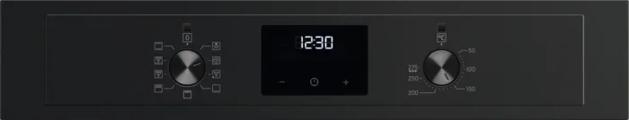 Особенности дизайна и внешней панели управления — также важный пункт при выборе духовки на кухню. В данной модели нужно обратить внимание на цвет — черный,
