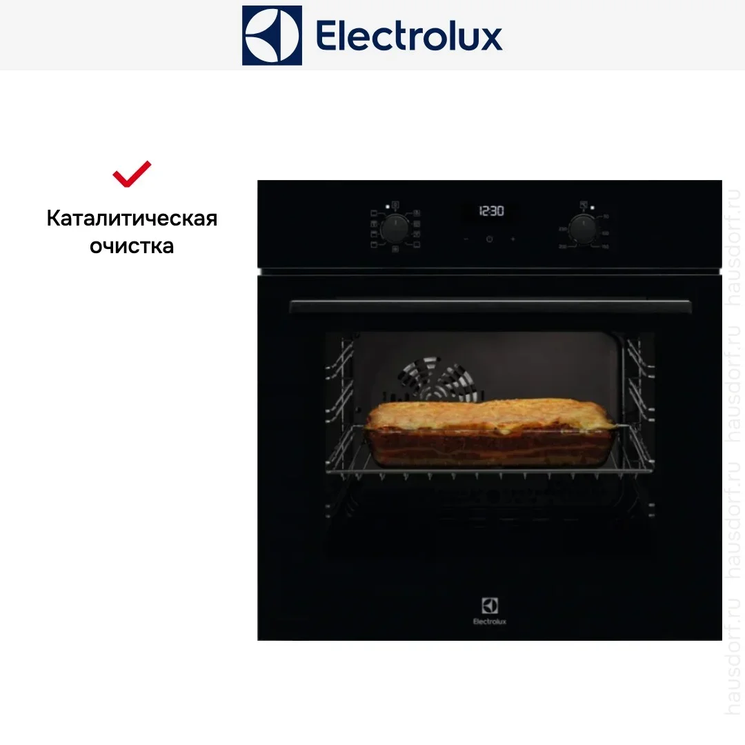 Духовой шкаф Electrolux EOF5C50Z — стильный встроенный прибор в лаконичном черном исполнении, который гармонично вписывается в современные кухни. Корпус имеет аккуратные линии и минималистичный фасад, а тёмный цвет придаёт интерьеру строгую элегантность. Откидная дверца с двумя стеклами смотрится аккуратно и одновременно снижает теплопередачу наружу. Габариты 58.9×59.5×56 см оптимальны для стандартной ниши 57.8—59×56×55 см, а масса около 29.4 кг облегчает установку и монтаж.