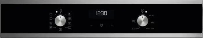 Электронное управление объединяет сенсорные кнопки и утапливаемые поворотные регуляторы, а информативный дисплей показывает время и настройки. Наличие часов и таймера упрощает планирование процессов и позволяет не следить постоянно за готовкой. Освещение камеры делает контроль готовности удобным без открывания дверцы, что снижает потери тепла.