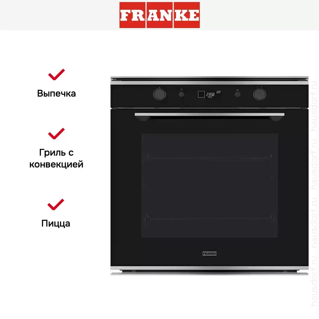 Количество режимов работы в духовом шкафу Франке: 10. В число доступных программ входят: классический нагрев, конвекция, запеканки, гриль для создания хрустящей корочки, пицца, и другие. Помимо основных программ воспользуйтесь специальными возможностями этого прибора: подогревом готовых блюд для подачи гостям — благодаря этой функции не нарушается структура, не пересушивается и не пережаривается корочка; опцией автоматического поднятия теста; быстрым разогревом для ускорения работы; поддержанием температуры в камере на определенном уровне, чтобы блюда не остывали; и другими. Тип гриля в этой модели — электрический.