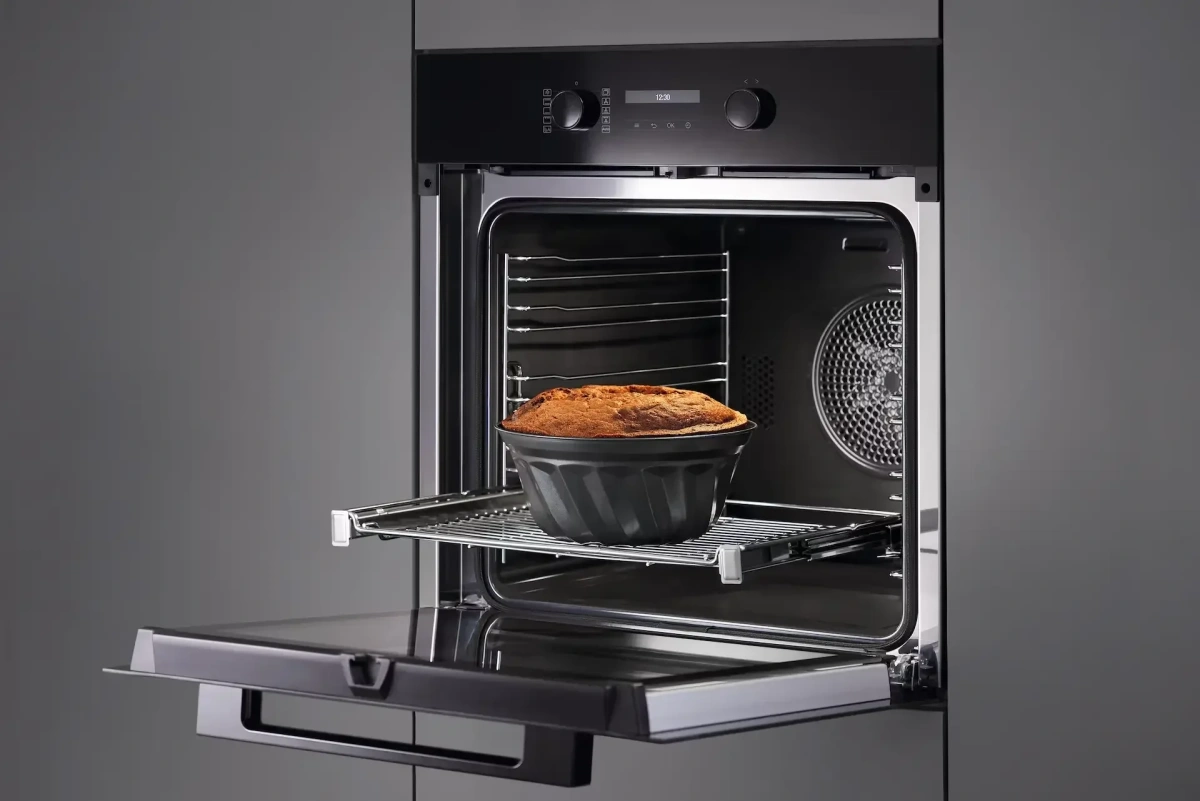 Особенности дизайна и внешней панели управления — также важный пункт при выборе духовки на кухню. В данной модели нужно обратить внимание на цвет — черный обсидиан, охлаждение двери, чтобы поверхность и мебель вокруг не нагревались.