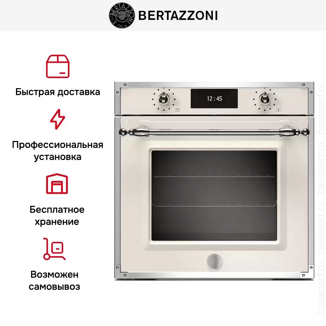 Духовой шкаф цвета слоновой кости с хромированной отделкой подойдет светлой кухне, разбавит монохромный дизайн лаконичными металлическими акцентами. Смешанное управление с поворотными рукоятками и сенсорным дисплеем элементарно в освоении всеми членами семьи, даже пожилыми.