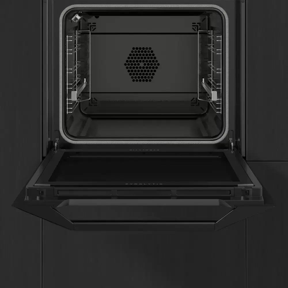 Особенности дизайна и внешней панели управления — также важный пункт при выборе духовки на кухню. В данной модели нужно обратить внимание на цвет — черный, охлаждение двери, чтобы поверхность и мебель вокруг не нагревались.
