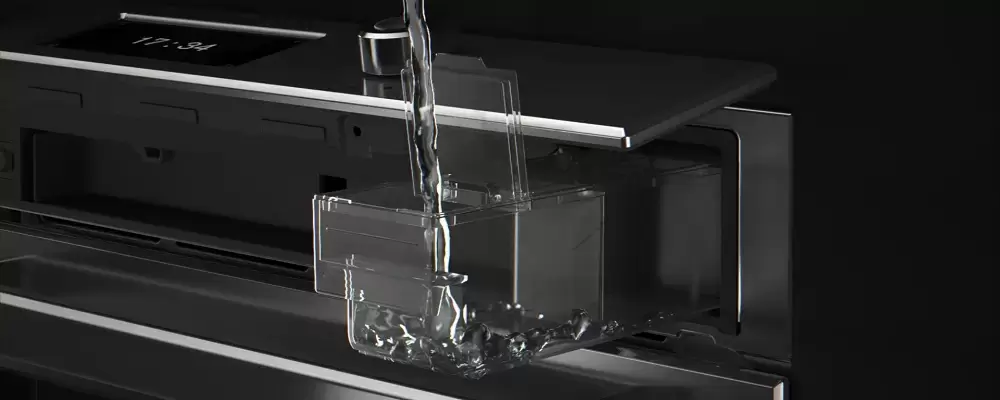 Удобство управления сочетает сенсорные кнопки и поворотные регуляторы, а TFT-дисплей даёт наглядную информацию о режиме и времени. Есть электронные часы, таймер с функцией окончания и опция отложенного старта, что позволяет синхронизировать готовку с распорядком дня. Дверца откидная с доводчиком и четырёхслойным стеклом обеспечивает безопасность и хорошую теплоизоляцию. Съёмное внутреннее стекло облегчает доступ к камере при чистке, а галогенное освещение даёт чёткий обзор блюда в процессе приготовления.