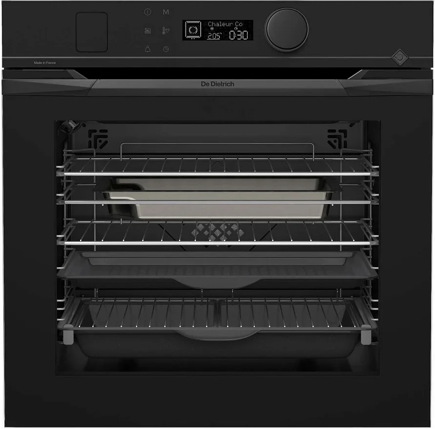 Духовой шкаф De Dietrich DOR4546BE обладает стильным внешним видом и продуманной эргономикой, которые легко впишутся в современную кухню. В исполнении Philharmonie корпус и фасад окрашены в благородный черный цвет, а аккуратная ручка и матовая фурнитура создают цельный и строгий облик. Габариты прибора рассчитаны на стандартную нишу для встраивания 58.5×56×54.5 см, что облегчает монтаж и планирование кухни. Четырехслойная дверца с системой холодного стекла и мягким доводчиком гарантирует безопасное и тихое закрытие, а съемное внутреннее стекло упрощает уход.