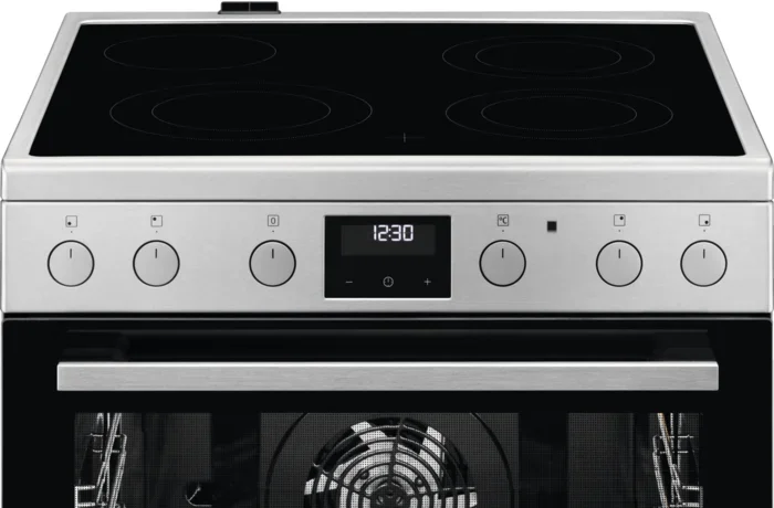 Электрическая плита Electrolux LKR 64022 AX создана для тех, кто ценит продуманный дизайн и рабочую надежность. Корпус из нержавеющей стали смотрится сдержанно и стильно, он выдерживает ежедневную эксплуатацию и легко вписывается в кухню современного формата. Фурнитура и ручки выполнены в одном оттенке с облицовкой, что обеспечивает цельный и аккуратный внешний вид. Панель управления объединяет сенсорные элементы с утапливаемыми поворотными переключателями, а компактный дисплей и электронные часы делают управление понятным и быстрым.
