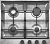 Во втором ряду располагаются две конфорки «Шеф» с двумя рядами пламени, которое направлено к центру для равномерного нагрева дна посуды. В первом ряду находятся стандартная и вспомогательная конфорки: все они оснащены электроподжигом и системой «газ-контроль» для предотвращения утечки газа. Механическая панель управления с поворотными переключателями служит для бесступенчатой регулировки мощности.