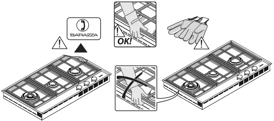 Газовая варочная панель Barazza 1PLE3D шириной 116 см отличается расположением конфорок в линию и может быть размещена на кухонном острове. Модель входит в дизайн-коллекцию LAB, она изготовлена из толстой нержавеющей стали AISI 304 с атласной поверхностью. Еще одна ее особенность — встраивание вровень со столешницей. Посуда удобно размещается на прочной решетке из чугуна.