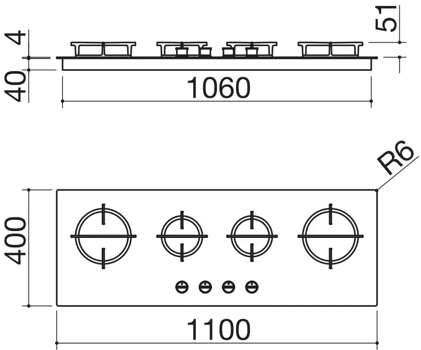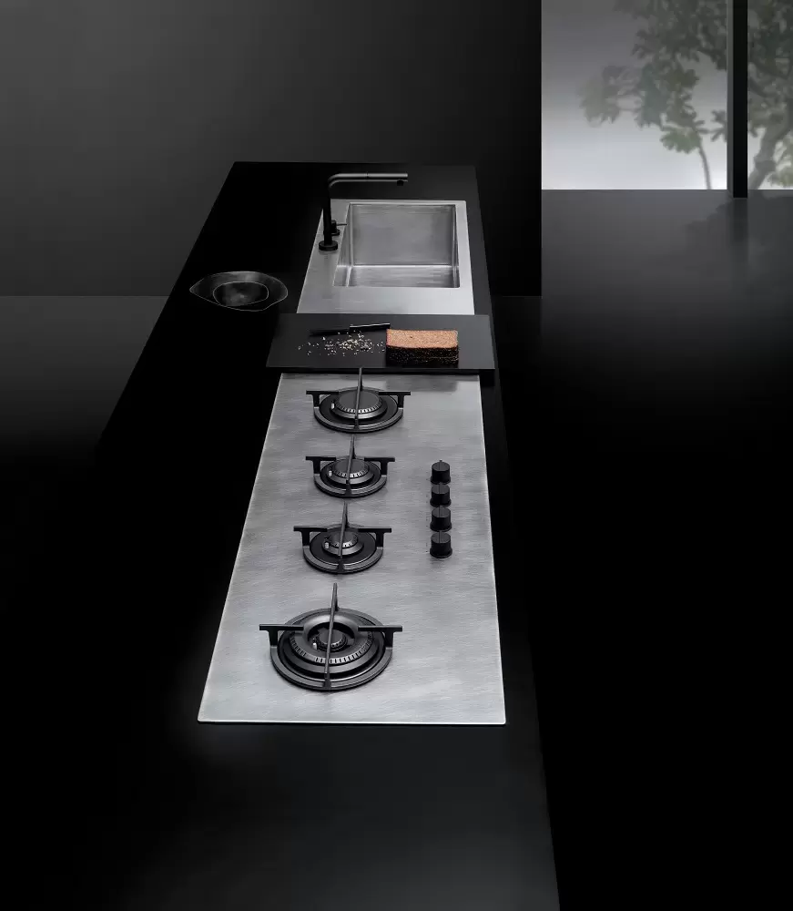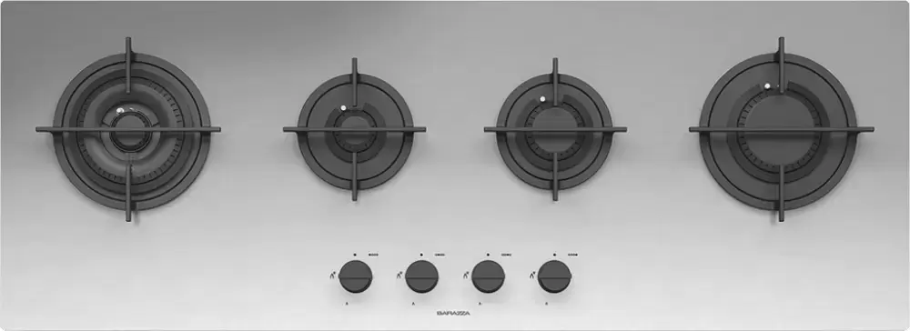 Независимая газовая варочная панель Barazza 1PMD104 шириной 110 см с четырьмя конфорками, расположенными в одну линию, относится к дизайн-коллекции MOOD. Поверхность изготовлена из матовой нержавеющей стали AISI увеличенной толщины 304 мм и может устанавливаться над столешницей. Раздельные чугунные решетки для каждой конфорки позволяют разместить посуду любого размера. Варочная панель имеет возможность подключения к газу в баллонах.
