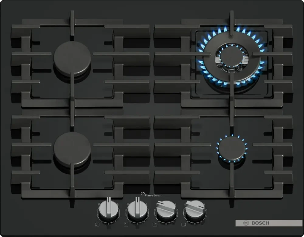 Модель Бош PPH6A6I40O входит в дизайн-линейку: Serie | 6. Цвет — черный. Открытый огонь не страшен ни вашей посуде, ни вам, так как горелки надежно закрыты решетками. Материал самой поверхности: закаленное стекло. Управление этой моделью механическое. Для переключения уровней нагрева, выбора функций используются следующие переключатели: поворотные. Простая система контроля за прибором делают его более универсальным, ведь разобраться сможет кто угодно.