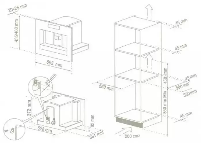 Габариты ниши для встраивания (см) (ШхВхГ) 45 х 56 х 55