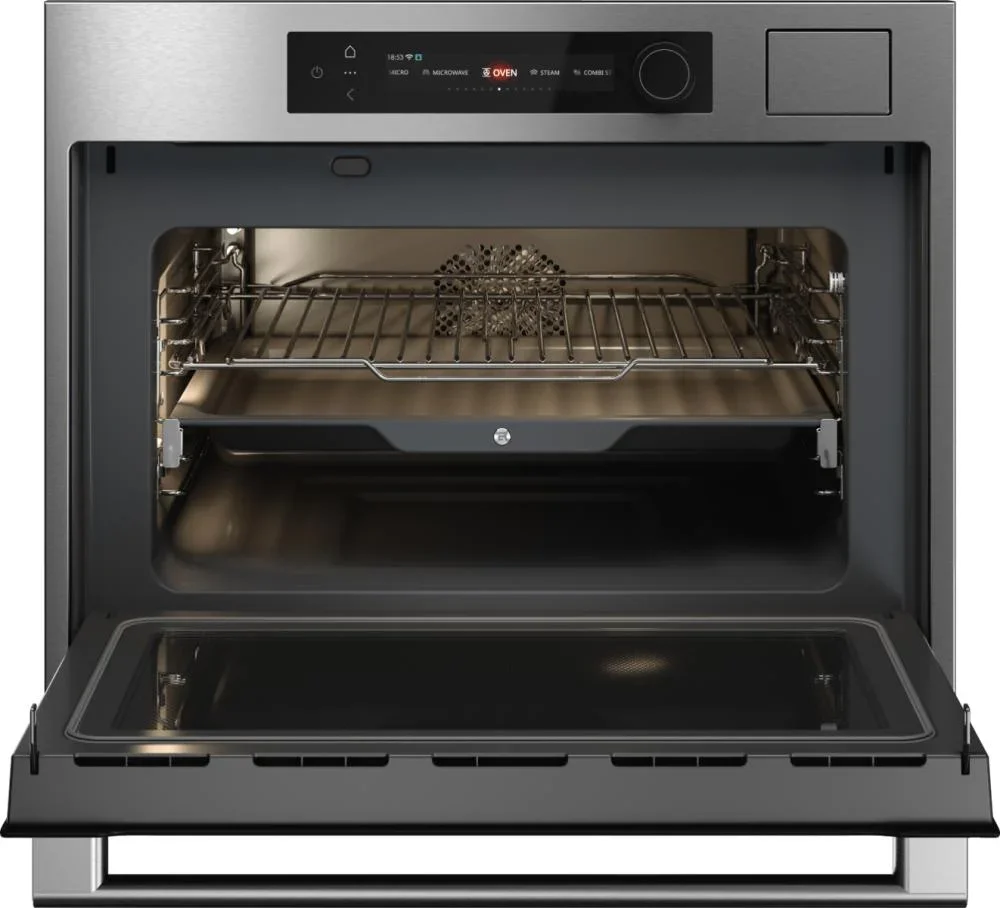 Компактный духовой шкаф ASKO OCSM64SSH представляет собой сочетание современного минимализма и продуманной инженерии: тонкая стальная рамка NYACraft Frame Series 6, матовая нержавеющая поверхность и аккуратная ручка с фирменным логотипом создают впечатление премиального встраиваемого решения, которое органично впишется в интерьер кухни любого стиля. Внутренняя камера объёмом 50 литров покрыта износостойкой эмалью и оснащена светодиодной подсветкой с регулируемой яркостью и цветовой температурой, что упрощает контроль за процессом приготовления и делает эксплуатацию комфортной. Модель сочетает режимы классического верхнего/нижнего нагрева, мощную конвекцию и функции приготовления на 100% пару благодаря парогенератору Geyser Steam с ёмкостью резервуара 1,2 л, который автоматически формирует оптимальное количество пара под конкретный рецепт; это обеспечивает равномерную выпечку, сочность мяса и сохранение полезных веществ в овощах. Набор режимов впечатляет: 28 пользовательских вариантов и 143 автоматические программы, включая пошаговое приготовление, сочетание горячего воздуха с паром, полноценную функцию микроволновой обработки мощностью 1000 Вт без поворотного стола (Stirrer), а также аэрогриль и аэрофритюр, что расширяет возможности готовки и позволяет заменить несколько устройств на один универсальный прибор. Для удобства предусмотрены телескопические направляющие (однопозиционные), съёмные навесные направляющие для четырёх уровней противней, решётка, два противня и термощуп для точного контроля степени прожарки; дверца с четырьмя стёклами и системой холодной поверхности предотвращает ожоги при соприкосновении, а функция защиты от детей исключает случайное включение. Управление интуитивно: сенсорные кнопки в сочетании с подсвечиваемыми поворотными регуляторами и текстовым дисплеем дают быстрый доступ к режимам, поддержке приложения ConnectLife и TRIR, позволяя запускать рецепты и мониторить процесс дистанционно. Дополнительные опции расширяют привычные границы: Celsius°Cooking для точного поддержания температуры от 30 до 250 °C, ECO-режим, уменьшение влажности, функции разогрева, стерилизации и «Шаббат», а также режимы размораживания и поддержания готовых блюд в тёплом состоянии. Компактность корпуса (45.8×59.7×56.4 см) и варианты ниши для встраивания позволяют установить прибор в ограниченном пространстве, не жертвуя функциональностью; устройство рассчитано на напряжение 220-240 В и частоту 50-60 Гц, длина сетевого кабеля 200 см обеспечивает удобство подключения. Традиционная очистка дополняется функцией удаления накипи, а резервуар легко обслуживается; масса нетто 38.9 кг гарантирует устойчивость встраивания. Этот многофункциональный агрегат подойдёт тем, кто ценит сочетание технологий и эстетики: компактный встроенный прибор создаёт условия для профессионального подхода к домашней кулинарии с минимальной площадью под опору, предлагая универсальные режимы, точное управление и богатую комплектацию для разнообразных рецептов.