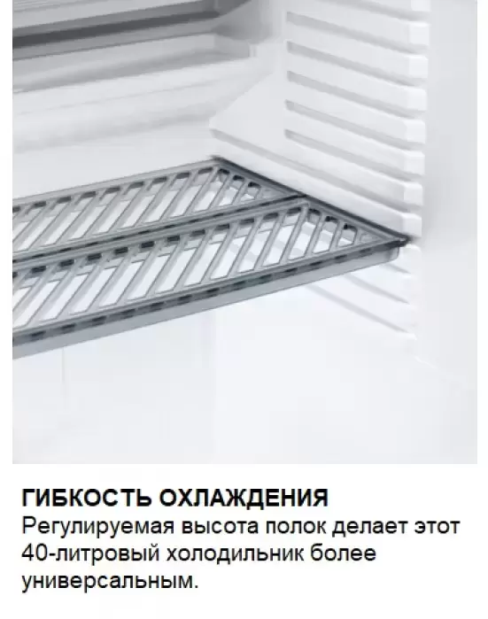 Данная модель — отдельностоящая, поэтому нужно тщательно подобрать место для ее размещения. Благодаря компактным размерам, она подойдет даже маленькой кухне. Вы можете поменять направление открывания двери, так как упор переставляемый и ее можно перевесить на другую сторону. Такая функция открывает больше возможностей для установки. Небольшой холодильник для хранения продуктов можно установить не только дома, но и в офисе, в гостиничном номере, в кафе или ресторане. Количество камер: 1.