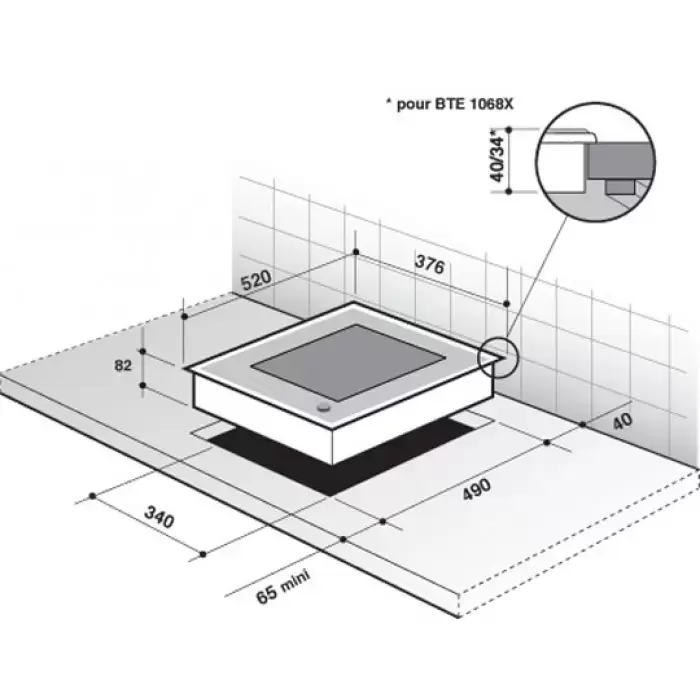 Размеры ниши для встраивания, ШхГ (см) 34х49