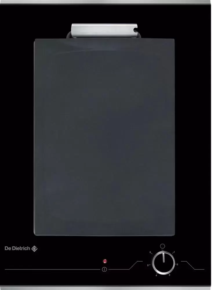 В серийную комплектацию электрической комби-панели De Dietrich DTE 1028 X входит съемная жаропрочная решетка. Управление устройством осуществляется посредством эргономичных поворотных переключателей. В качестве материала для конфорки, использовано закаленное жаропрочное стекло.