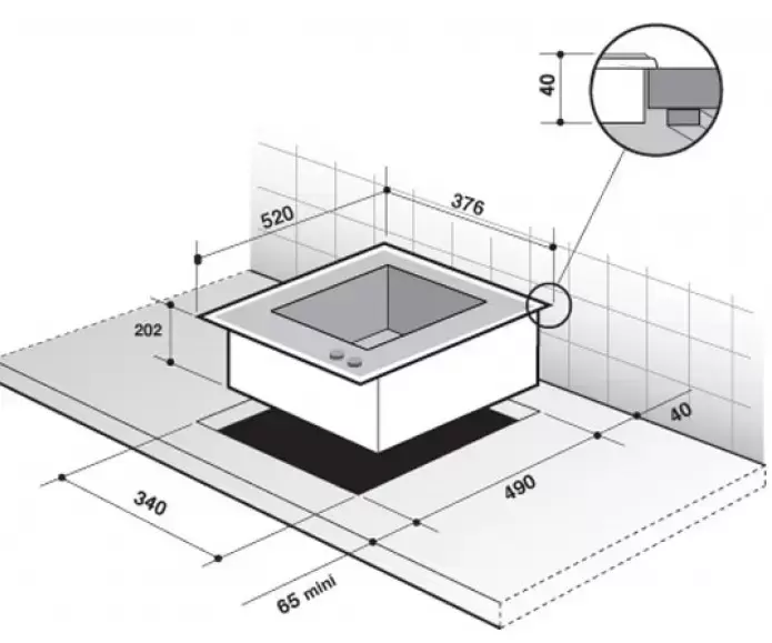 Размеры ниши для встраивания, ШхГ (см) 34х49