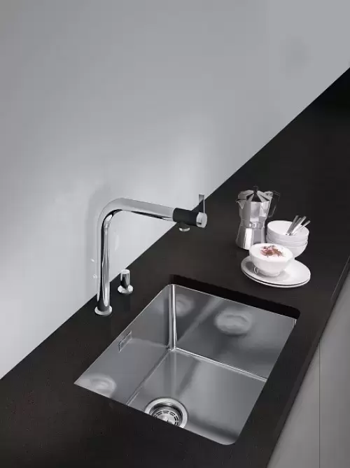 Blanco Andano 400-U — стильная мойка из нержавеющей стали от Blanco, которая гармонично дополнит интерьер кухонного пространства. Для производства используется гигиеничная нержавеющая сталь 18/10 c зеркальной полировкой. Гармоничный дизайн не утратит свою популярность долгие годы. Модель квадратной формы из коллекции Andano устанавливается под столешницу. Такой тип монтажа считается наиболее гигиеничным, так как позволяет обойтись без стыков и швов, где скапливается грязь. Поддержанию чистоты служат и скругленные углы мойки. Все изделия из этой коллекции отличаются увеличенной глубиной чаши 19 см. В ней можно без труда вымыть объемную посуду, обработать продукты большого размера. Хромоникелевая сталь толщиной 0,9 мм сохраняет блеск и прочность даже при воздействии высоких температур и химически активных веществ. Ширина 44 см позволит установить мойку в небольшой кухне: для монтажа ее требуется база шириной всего 45 см.
