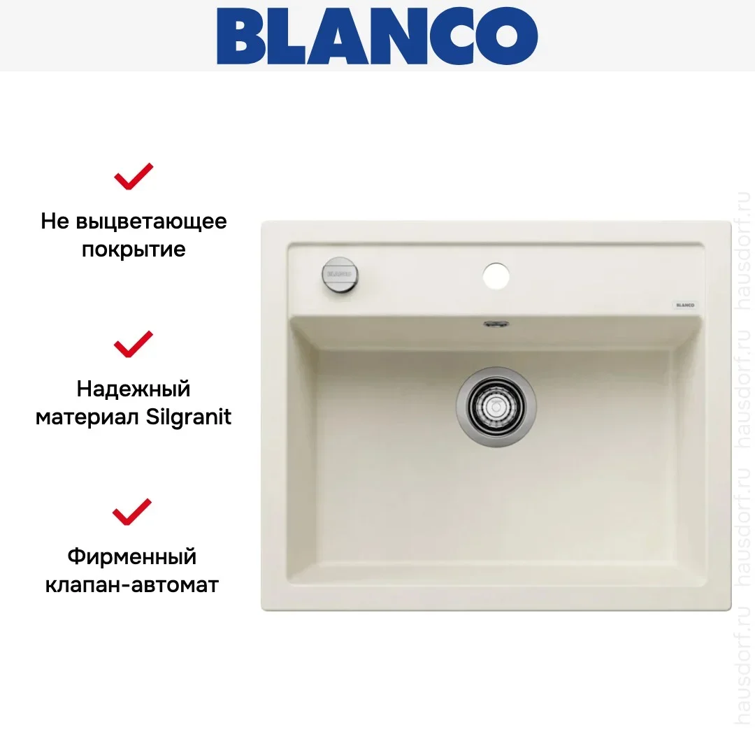 Мойка Blanco Dalago 6 Silgranit — накладная прямоугольная модель в мягком белом оттенке из прочного композитного материала, которая сочетает лаконичный внешний вид и продуманную эргономику. Ее габариты 61,5×51 см делают изделие компактным, но практичным для большинства стандартных кухонных секций.